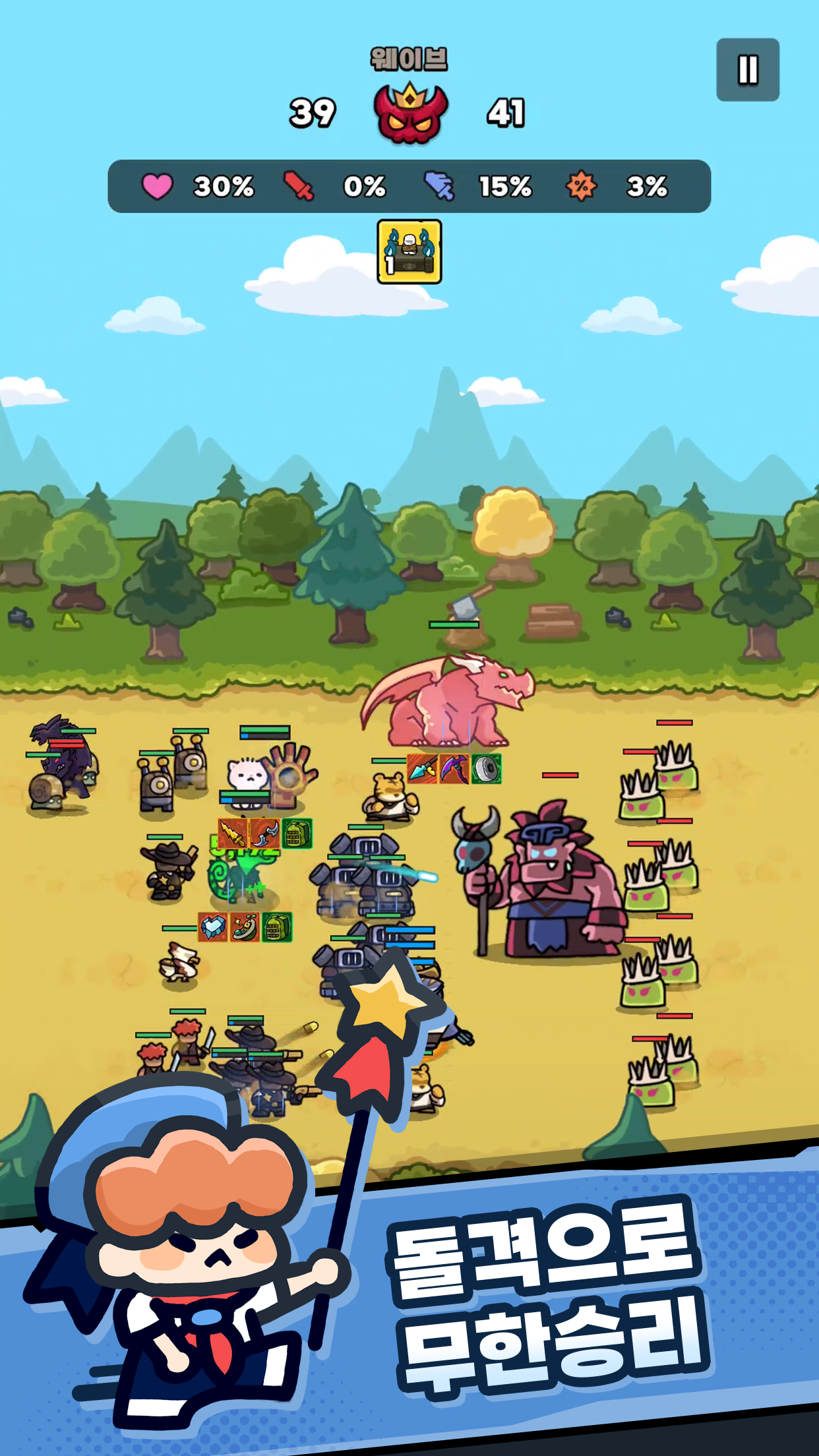 운빨돌격대는 이름에서부터 느껴지듯이 운의 요소와 돌격하는 재미를 결합한 모바일 방치형 RPG 게임입니다. 플레이어는 자신만의 영웅들을 수집하고 성장시켜 끊임없이 몰려오는 적들을 물리치며 스테이지를 돌파해야 합니다. 복잡한 조작 없이도 자동으로 진행되는 전투 시스템 덕분에 바쁜 일상 속에서도 틈틈이 게임을 즐기며 캐릭터를 육성하는 재미를 느낄 수 있습니다. 특히, 어떤 영웅을 뽑고 어떻게 조합하느냐에 따라 승패가 갈리는 전략적인 요소는 단순한 방치형 게임을 넘어선 깊이를 제공합니다.